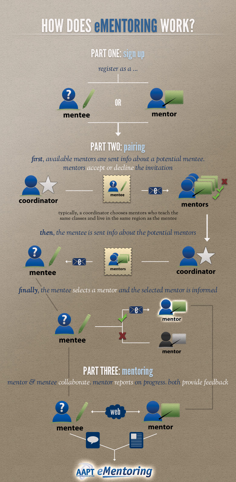 Have a question or observation that is not covered below? Let us know (ementoring@aapt.org) or try the FAQ.